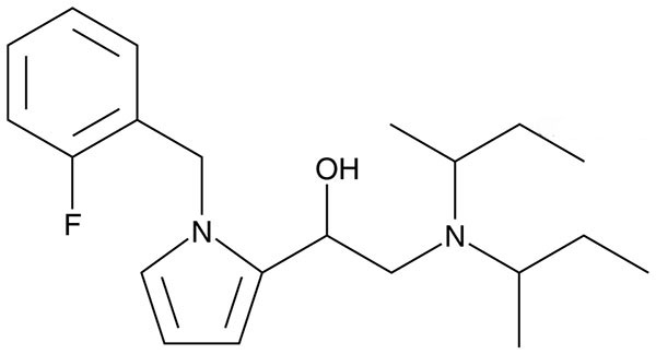 | IUPAC | 2-(di-sec-butylamino)-1-(1-(2-fluorobenzyl)-1H-pyrrol-2-yl]-2-(di-sec-butylamino)ethanol |